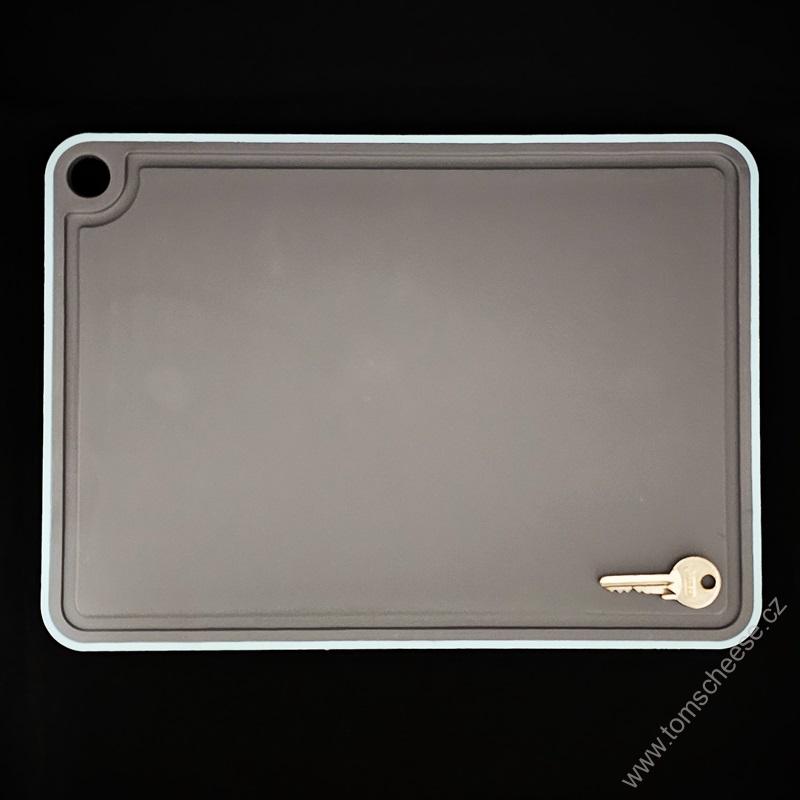 Plastové prkénko s drážkou, která zabraňuje stékání tekutin mimo prkénko na pracovní prostor.